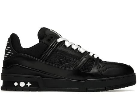 Sleek all-black Louis Vuitton low-top sneakers with premium leather and bold sole detail. Clean, stylish, and perfect for everyday luxury wear.